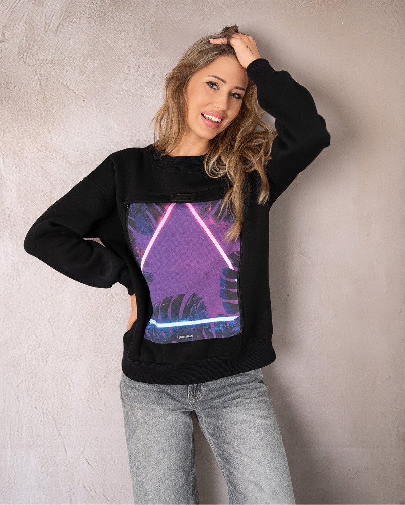 Na froncie znajduje się charakterystyczna, wymienna aplikacja – to ona nadaje bluzie unikalny charakter i pozwala na indywidualną ekspresję stylu.