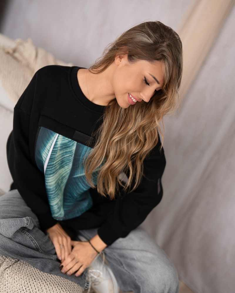 Każda aplikacja tworzona jest ręcznie – z dbałością o detale, kształt i fakturę. To nie masowa produkcja, lecz rzemiosło z duszą. Dzięki temu każda bluza staje się jedyna w swoim rodzaju – dokładnie tak, jak Ty.
